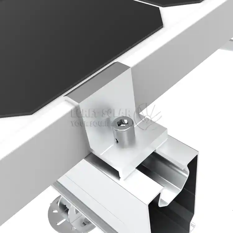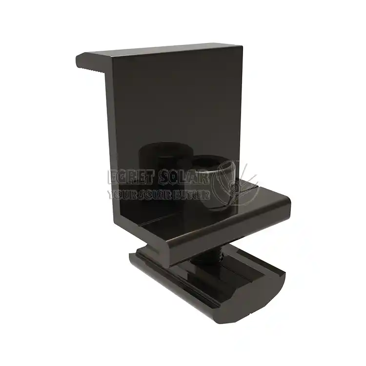 amaierako clamp eguzkiaerrenkada bakoitzaren kanpoaldeko osagaiaren markoa errailaren amaieran finkatzen du, irrista ez dadin. Aldi berean, osagaien ertzak sakatzeak alboetatik haizea, euria eta hautsaren inbasioa murrizten laguntzen du.Matrizearen ertzean dago eta zuzenean haizearen altxatze-indarra (gorantz tiratzeko indarra) eta haizearen xurgapen-indarra jasaten ditu.