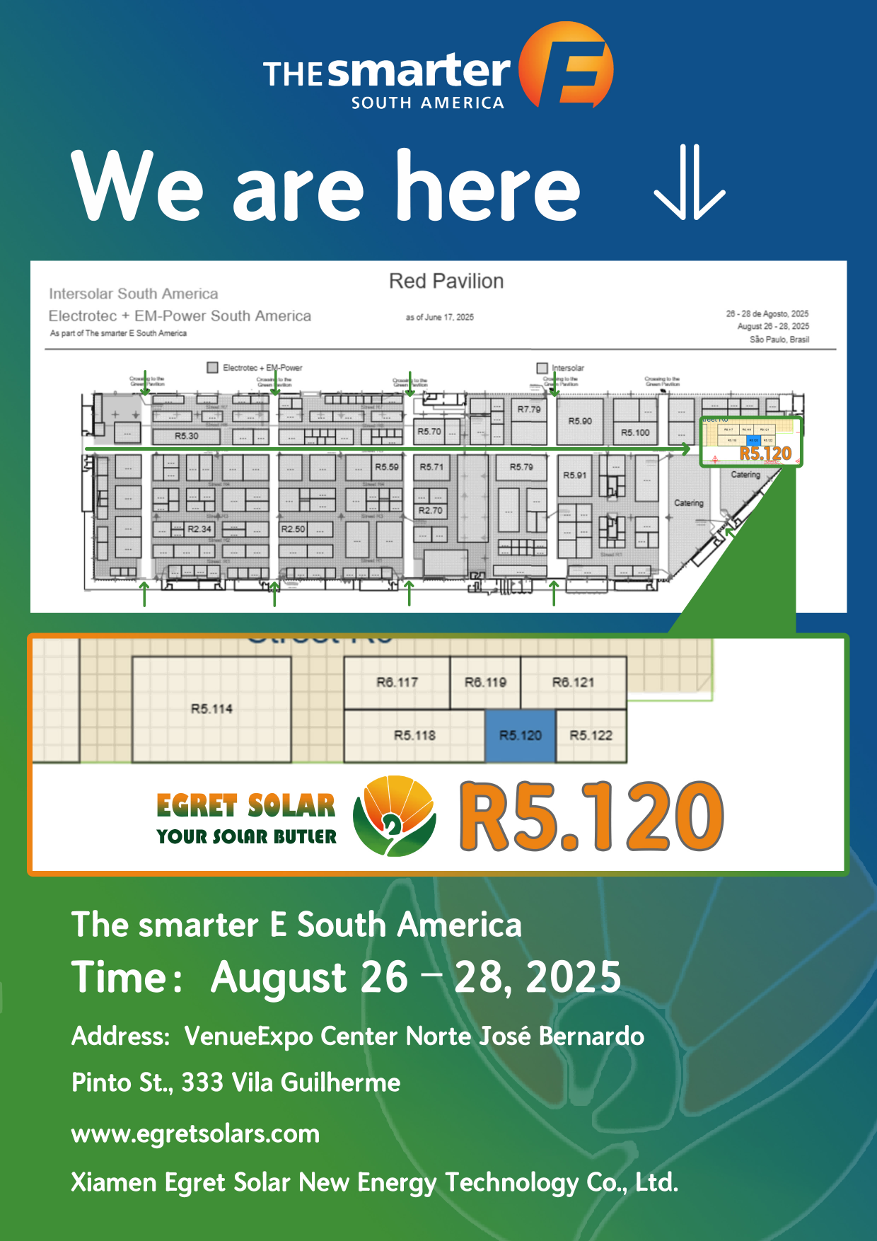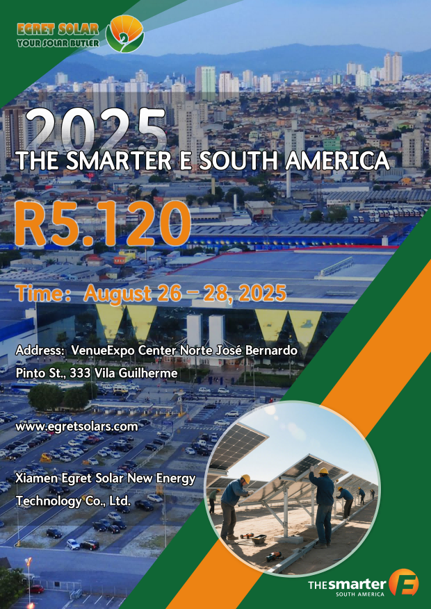 Energiaren sektore berriaren funtsezko jokalari gisa,Xiamen Egret Solar New Energy Technology Co., Ltd.Brasilgo Smarter e Hego Amerikako 2025 erakusketan, 2025eko abuztuaren 26tik 20025 erakusketan erakutsi du.