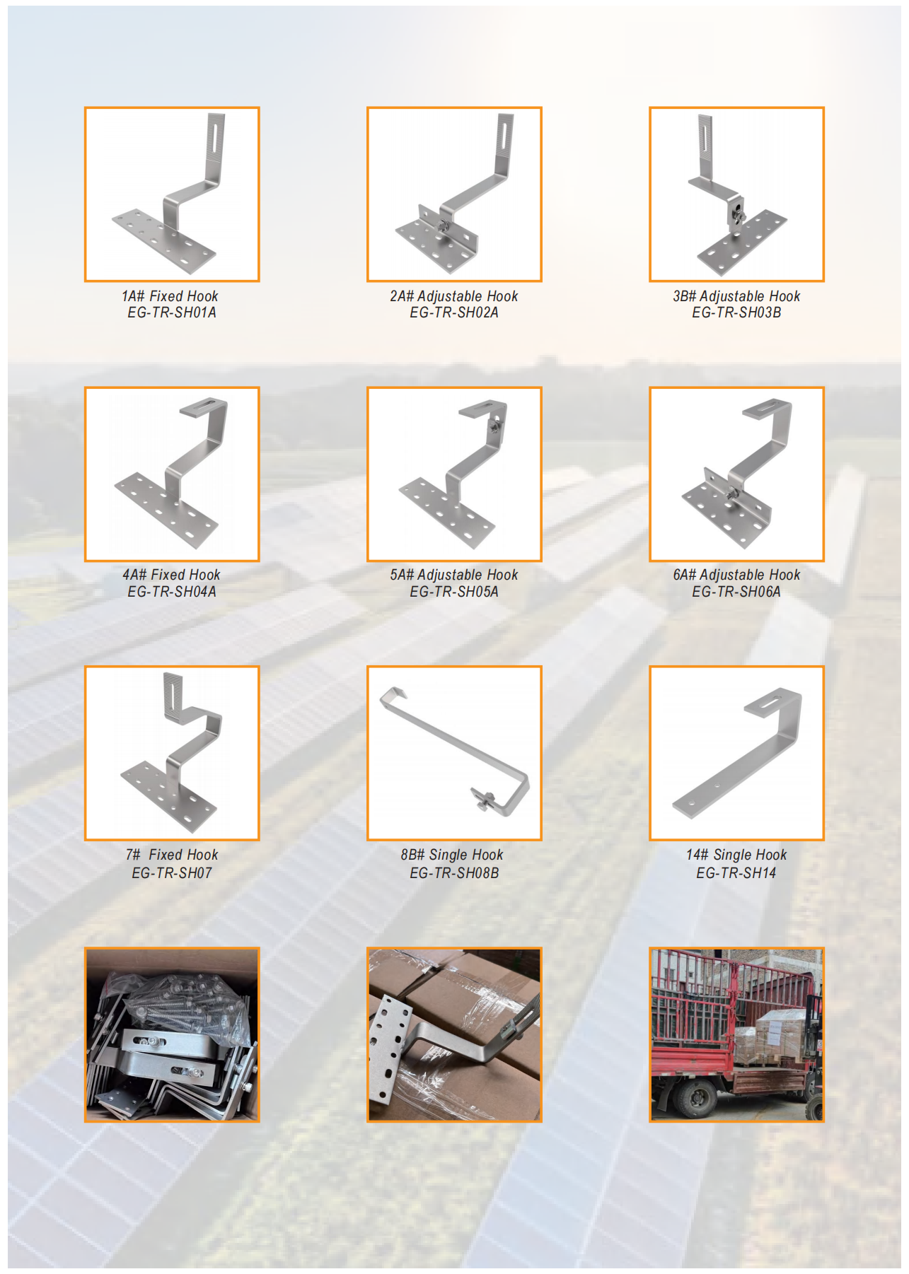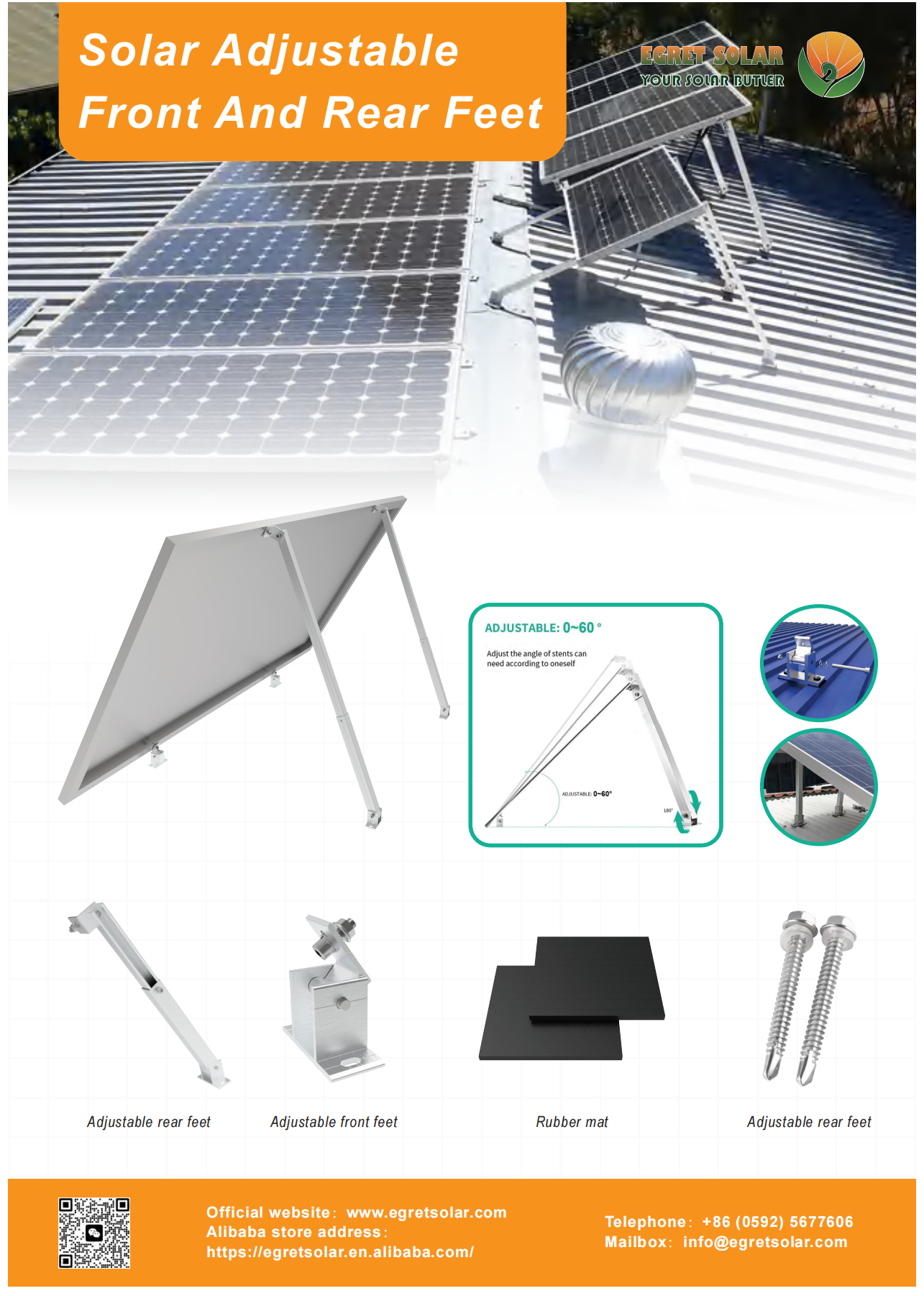 Egret Solarrek lagin ugari ekarri zituen erakusketara. Promartitutako produktu nagusiak desberdinak dira ingurune desberdinen arabera. Trenbide parentesi sistemak, L oinetako euskarri sistemak eta aurreko eta atzeko oineko sistema erregulagarriak daude, metalezko teilatuetan erabil daitezkeenak; Karbono altzairuzko muntaketa sistema eta aluminiozko Carport muntaketa sistema eguzki-aparkalentzat; Beheko muntatzeko sistema zutabe bakarrarekin eta lurreko muntatzeko sistema zutabe bikoitzarekin; Teilatu teilatua muntatzeko euskarria, normalean, teilatuen teilatuetarako erabiltzen da, eta kakoa eta trenbidea benetako egoeraren arabera hauta daiteke; BALLAST Teilatuaren muntaketa sistema eta Tripod Sistema gehien erabiltzen dira teilatu lauetarako. Esan iezaguzu instalazioaren agertokia, haizearen abiadura, elur karga, aurrekontua eta abar. Zuretzako diseinua egokituko dugu. Zure bihotz osoz fidatu zaitezke.